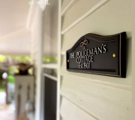 Had a lovely name plate made up for our home by @meadowplacesigns Our cottage was the policeman's home/office for this area, built 1901. We still have the jail in the backyard as well