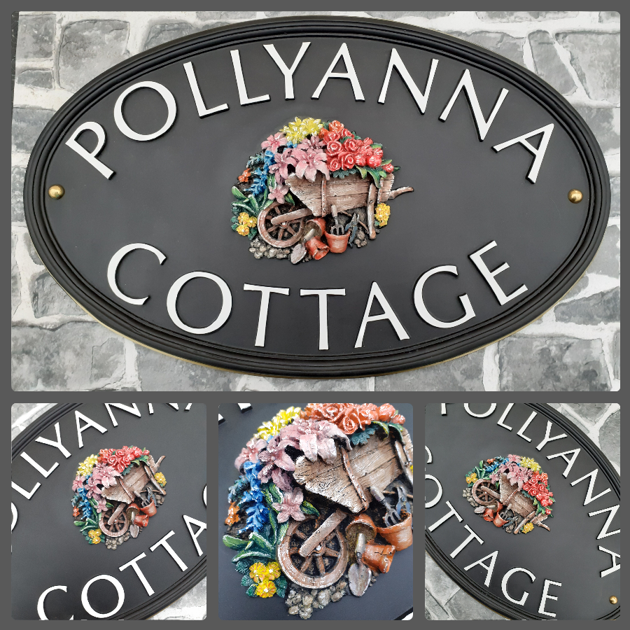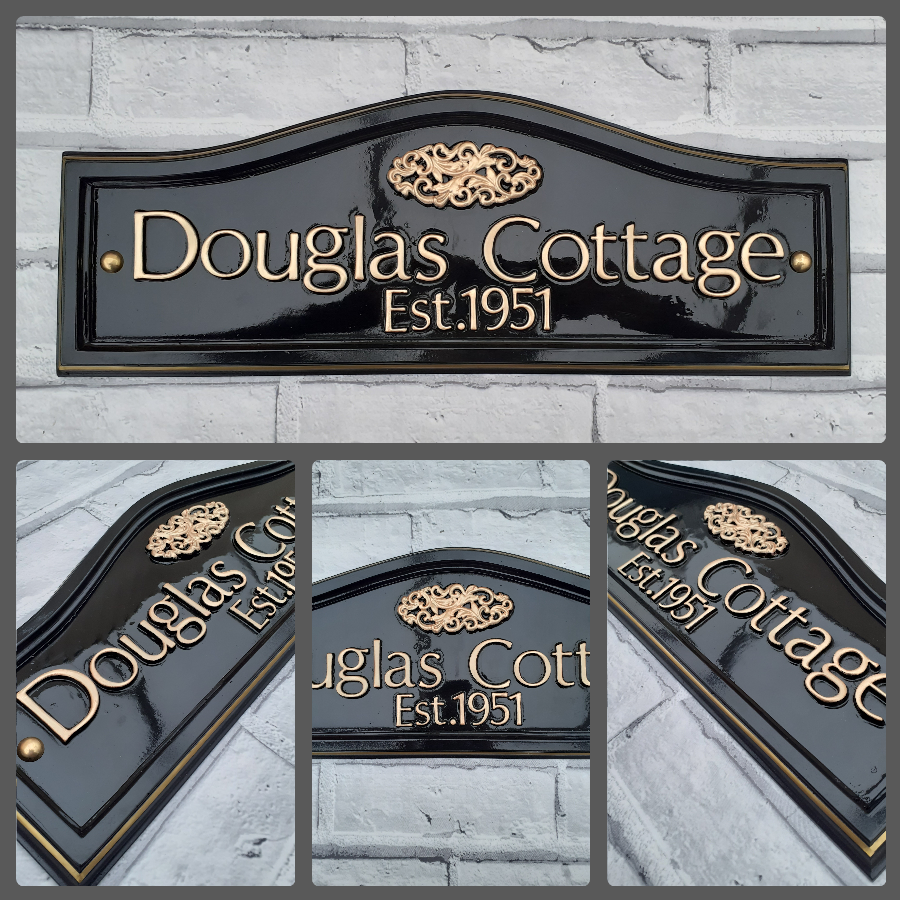 Each sign is sprayed with several coats of durable weather-resistant acrylic, resulting in a beautiful lasting gloss or Matt finish. All lettering, numbers, flourishes and sculptures are cast in relief creating an impressive substantial and stylish sign.
