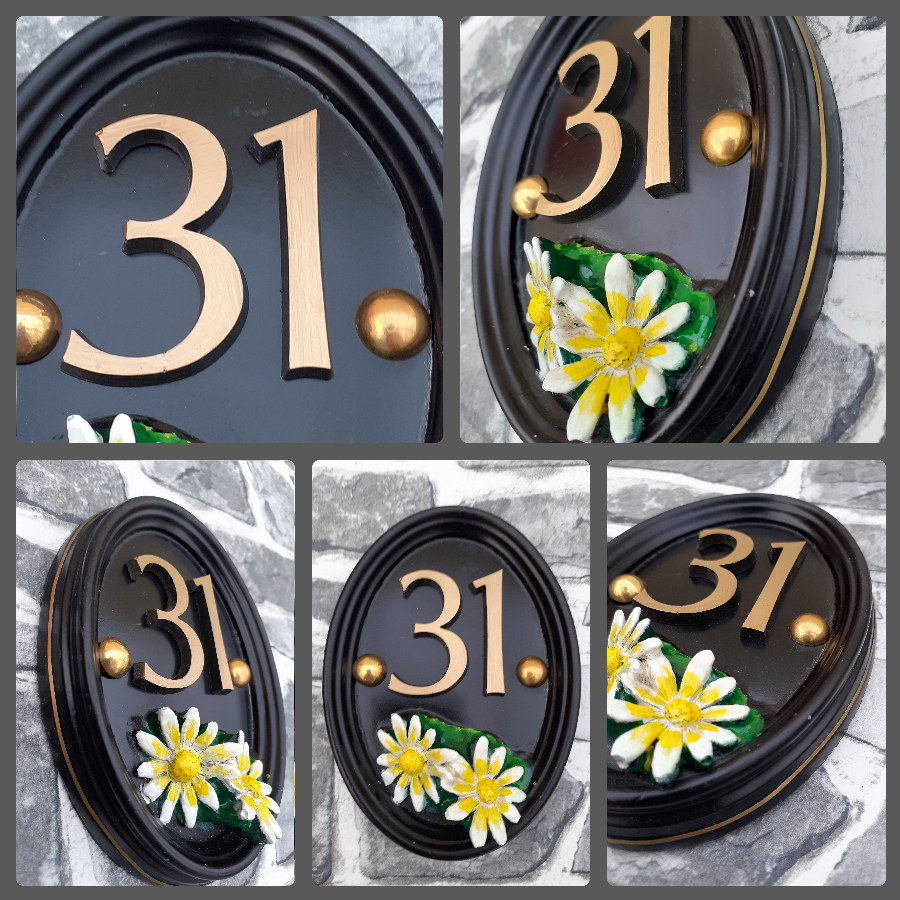 The edge of each of our oval daisy signs is coach lined to compliment your colour choice of letters or numbers.